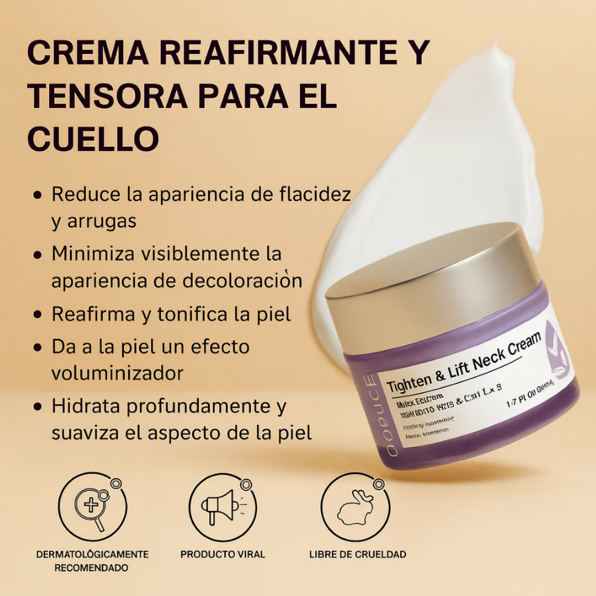 Cada día que pasa, la piel de tu cuello y escote pierde firmeza, elasticidad y tersura. Las arrugas horizontales se marcan, la piel se vuelve flácida y ese temido "cuello de pavo" aparece sin que puedas evitarlo. Te ves al espejo y sientes que tu cuello te delata la edad más que cualquier otra parte de tu cuerpo.
